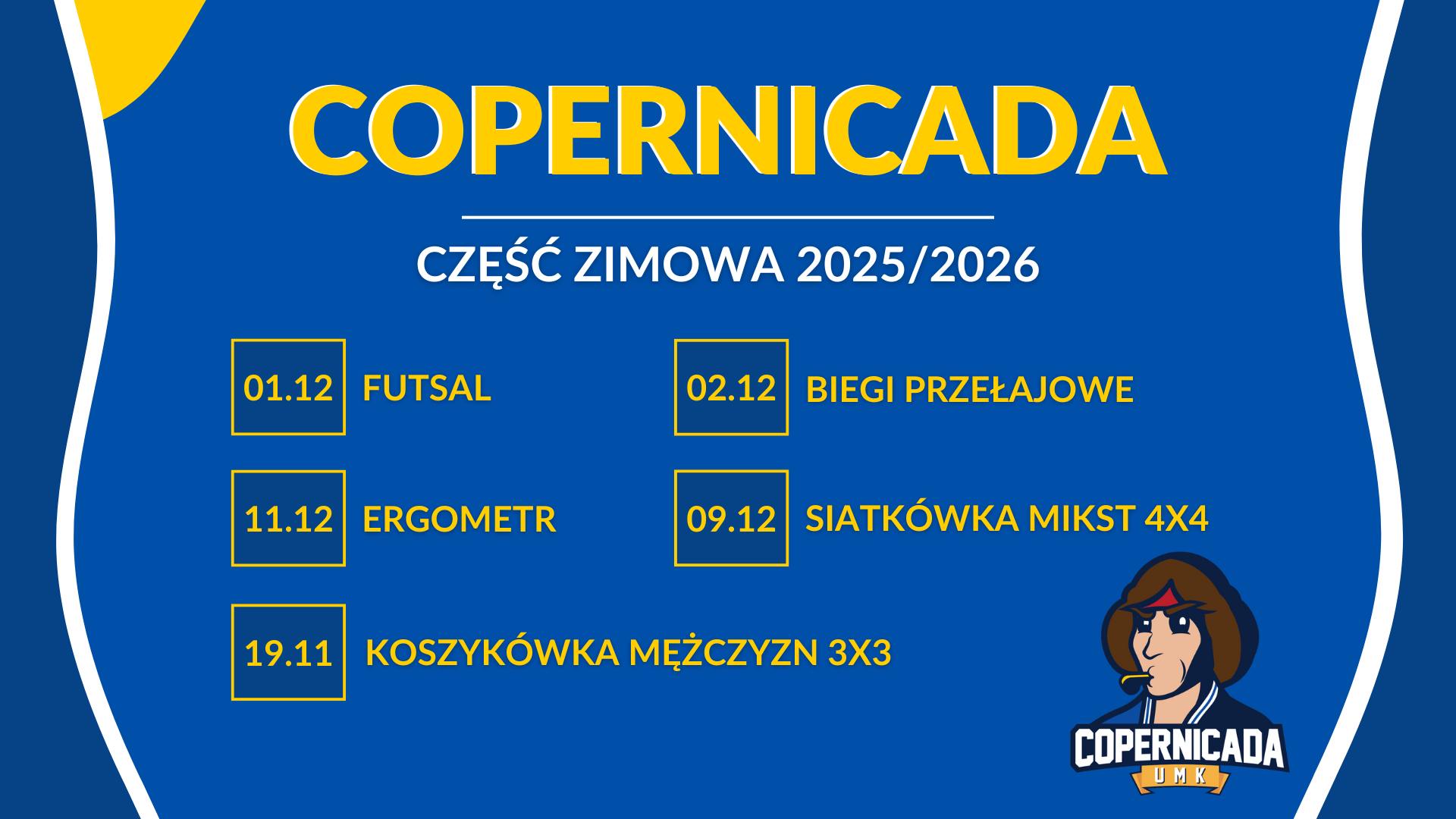 Nadchodzi Copernicada, czyli zimowa odsłona międzywydziałowej rywalizacji, w której emocje sięgają zenitu, a duch współzawodnictwa rozgrzewa nawet najbardziej mroźne dni!